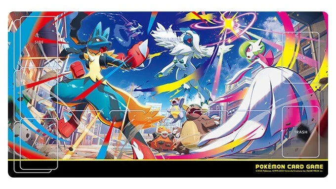 ルカリオやサーナイトといった人気ポケモンが描かれたメガシンカプレイマットで、対戦ゲームをさらに盛り上げましょう。この高品質プレイマットは、滑らかで耐久性に優れた表面で、カードの配置や素早い動きに最適化されており、白熱した試合でも正確な動きを維持できます。鮮やかなアートワークがメガシンカの躍動感を際立たせ、美しいビジュアルと戦略的な視点の両方をあなたのプレイマットに与えます。機能性とスタイルの両方を求める、本格的なコレクターやトーナメントプレイヤーに最適です。